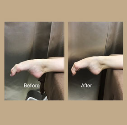 施術後は重心が真下に来て、左右共にバランスよくターンアウトができるようになったことで、O脚にも改善が見られました。